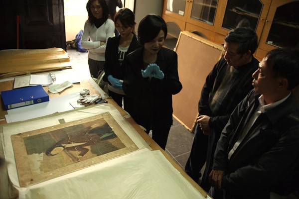 調査は国立美術館の収蔵庫でも行われた(2009年、中村勤さん撮影)